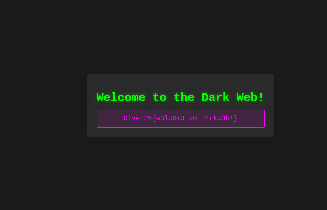 FLAG: Diver25{w3lc0m3_70_d4rkw3b!}